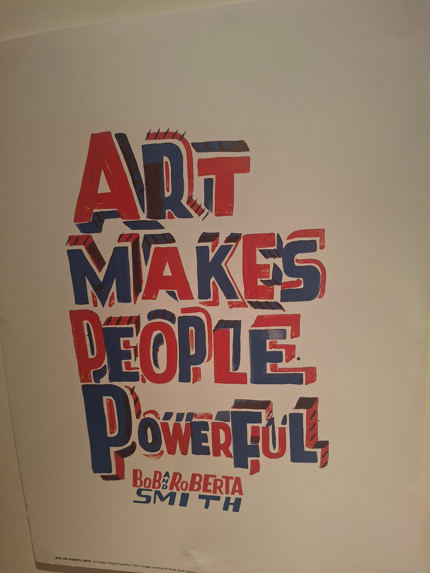 In his time, there was still a lot of politically conscious art, but so much in recent times has been captured by “the market”, resistance cultures turned into product that we need reminders often like this from Bob and Roberta Smith, which I have on my wall.